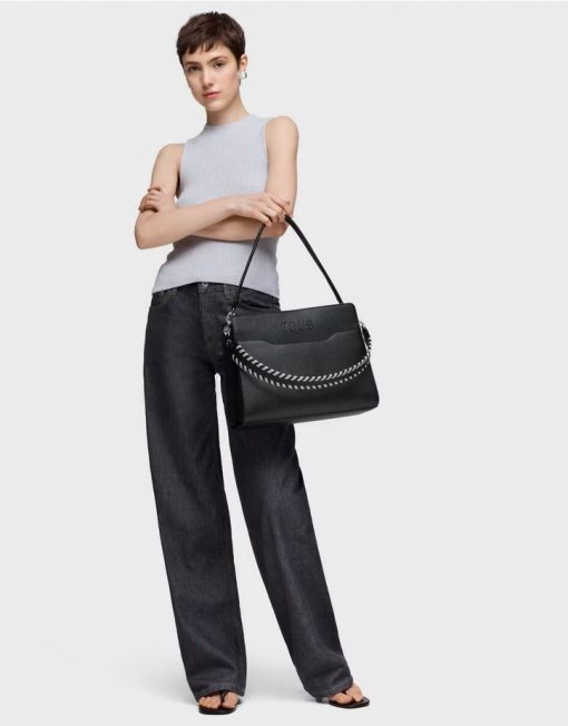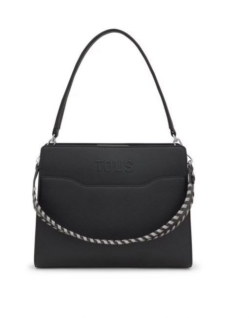 Bolso shopper mediano Audree Saffiano de poliuretano en color negro. Cierre magnético. Dos compartimentos separados por uno con cremallera. Bolsillo interior y bolsillo exterior abiertos. Dos asas de hombro extraíbles. Medidas (alto x ancho x fondo): 25 x 33,5 x 12,5 cm.