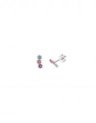 PENDIENTE SALVATORE 266A0038 PLATA RODIO TRES FLORES ESMALTE AZUL Y ROSA