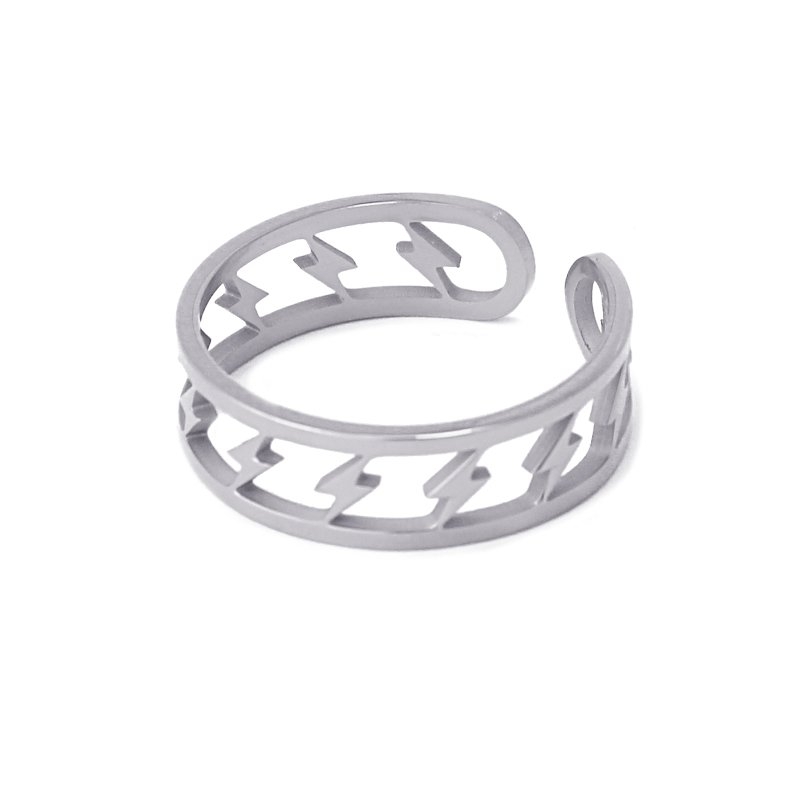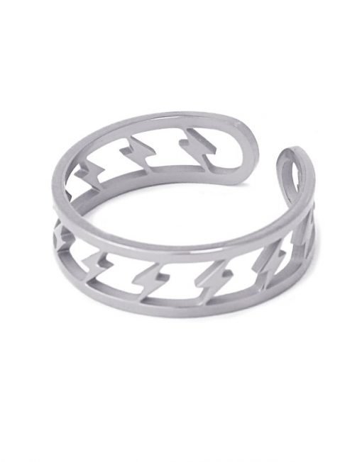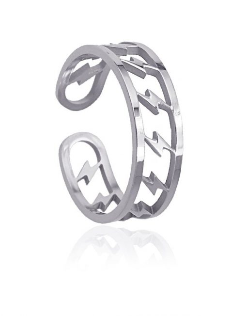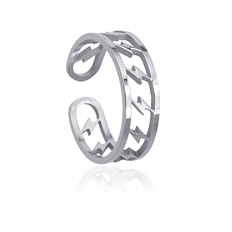 DETALLES Material Acero Quirúrgico Dimensiones 6 mm DESCRIPCIÓN Anillo ajustable con detalles en forma rayo.