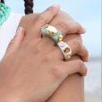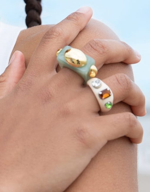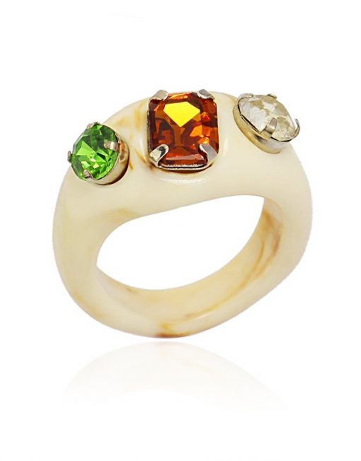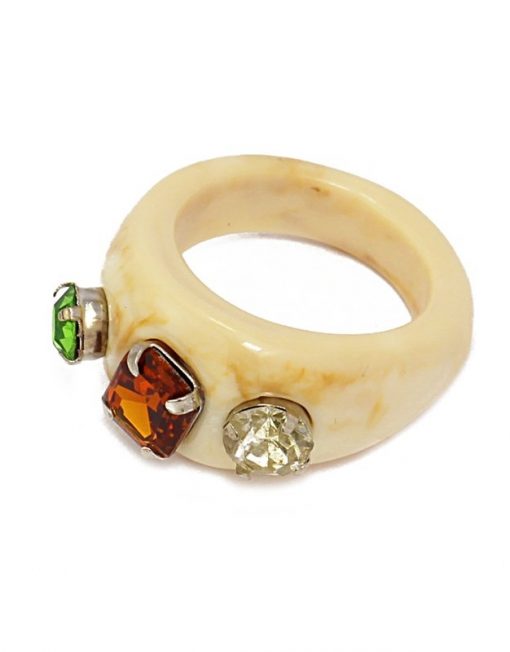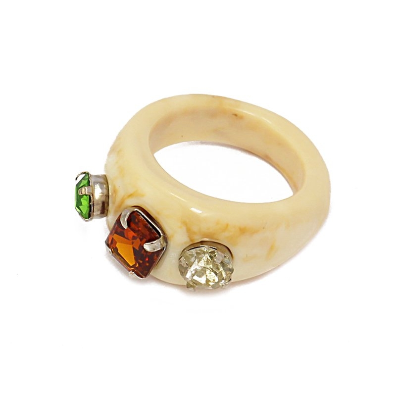 Anillo acrílico con piedras de cristal. Talla única.