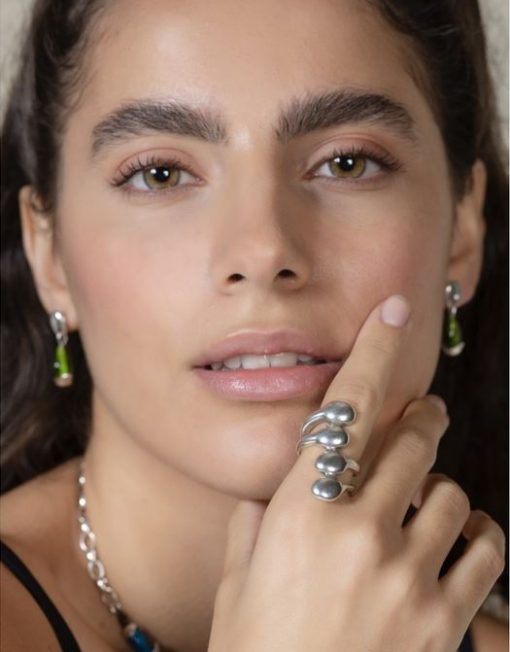 El anillo Liqüid captura la esencia del movimiento y la fluidez en un diseño que parece esculpido por el agua. Está bañado en plata y presenta una forma orgánica e irregular, como si pequeñas gotas se ramificaran suavemente sobre el dedo. Su acabado brillante y su silueta única lo convierten en una pieza con carácter, perfecta para quienes buscan una joya diferente, con alma contemporánea. Se adapta a distintos estilos y es ideal para combinar con otras piezas de la colección o lucir como anillo protagonista.