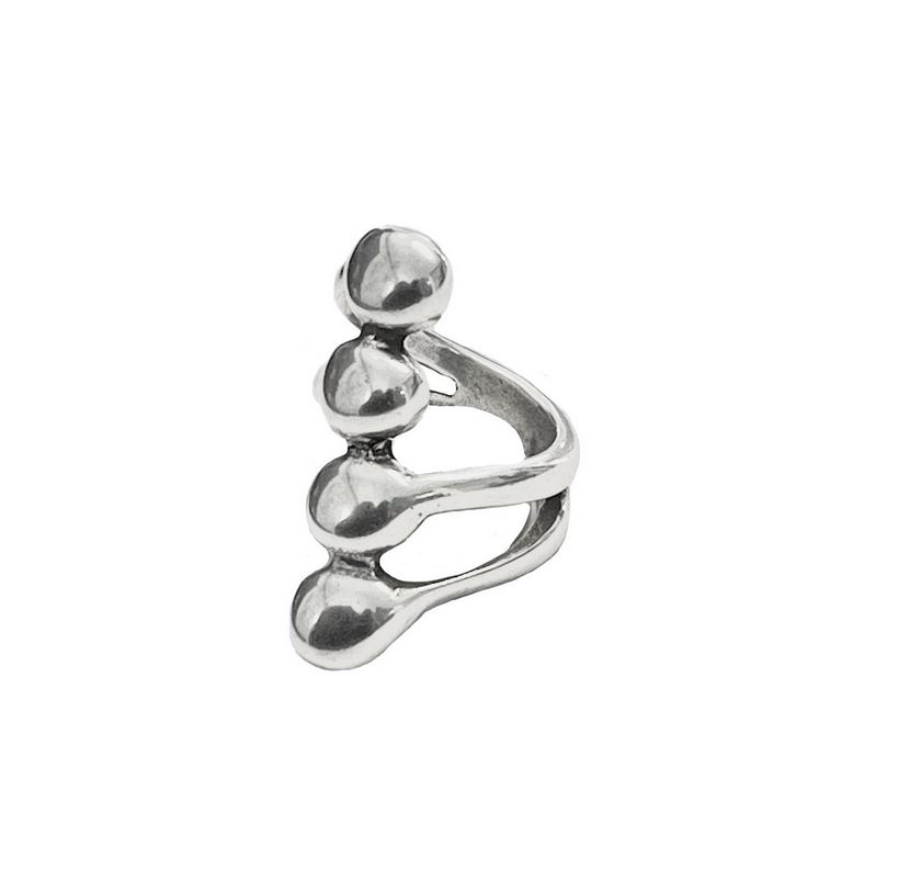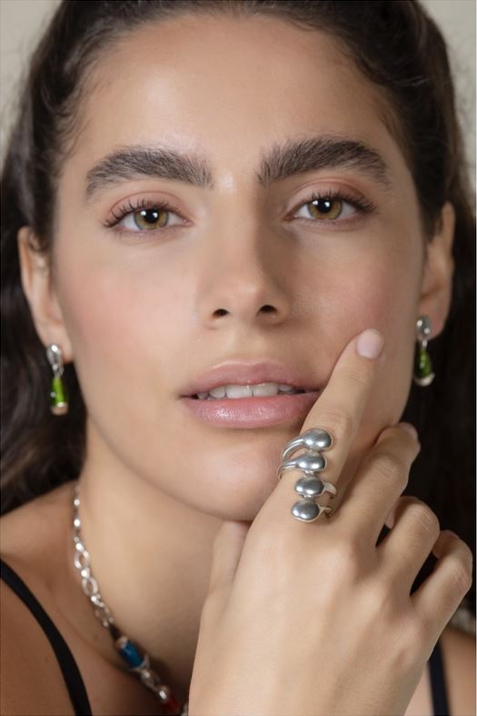 El anillo Liqüid captura la esencia del movimiento y la fluidez en un diseño que parece esculpido por el agua. Está bañado en plata y presenta una forma orgánica e irregular, como si pequeñas gotas se ramificaran suavemente sobre el dedo. Su acabado brillante y su silueta única lo convierten en una pieza con carácter, perfecta para quienes buscan una joya diferente, con alma contemporánea. Se adapta a distintos estilos y es ideal para combinar con otras piezas de la colección o lucir como anillo protagonista.