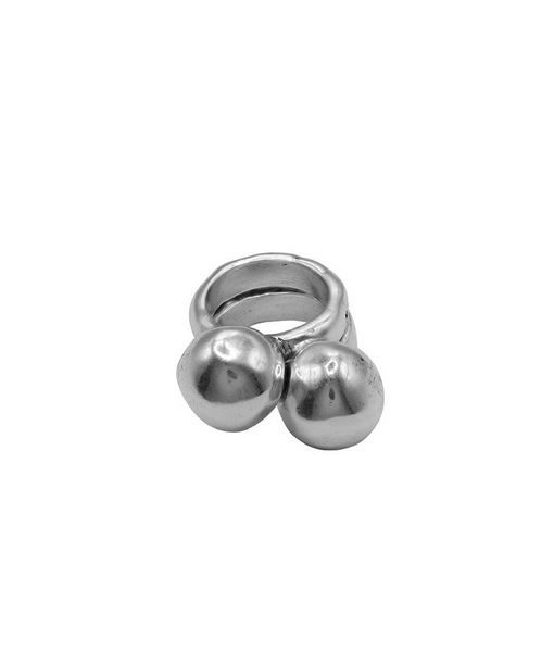El Anillo Spherik está compuesto por dos aros, cada uno con una esfera en la parte superior. Su diseño permite llevar los aros separados o encajados entre sí, creando un efecto de unión elegante y versátil. Baño de plata y disponible en cuatro tallas, es un anillo de gran presencia que aporta carácter y estilo contemporáneo a cualquier look.