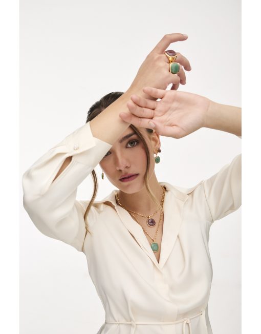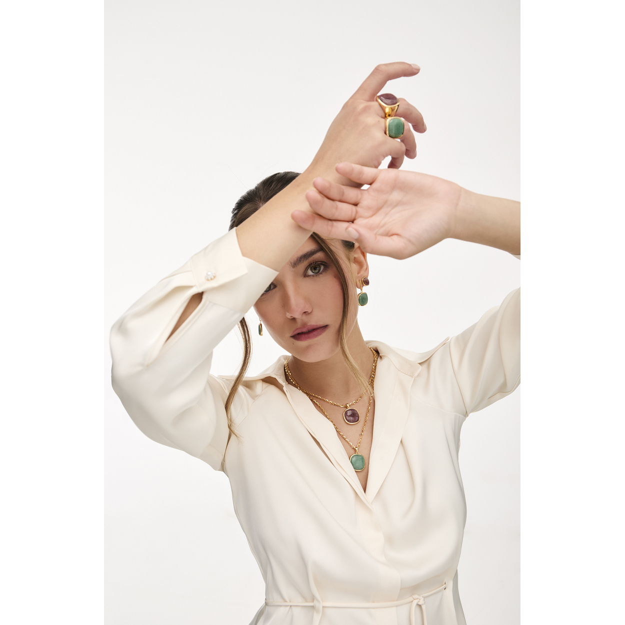 Anillo de Durán Exquse de la colección Atelier de plata dorada con cuarzo fresa