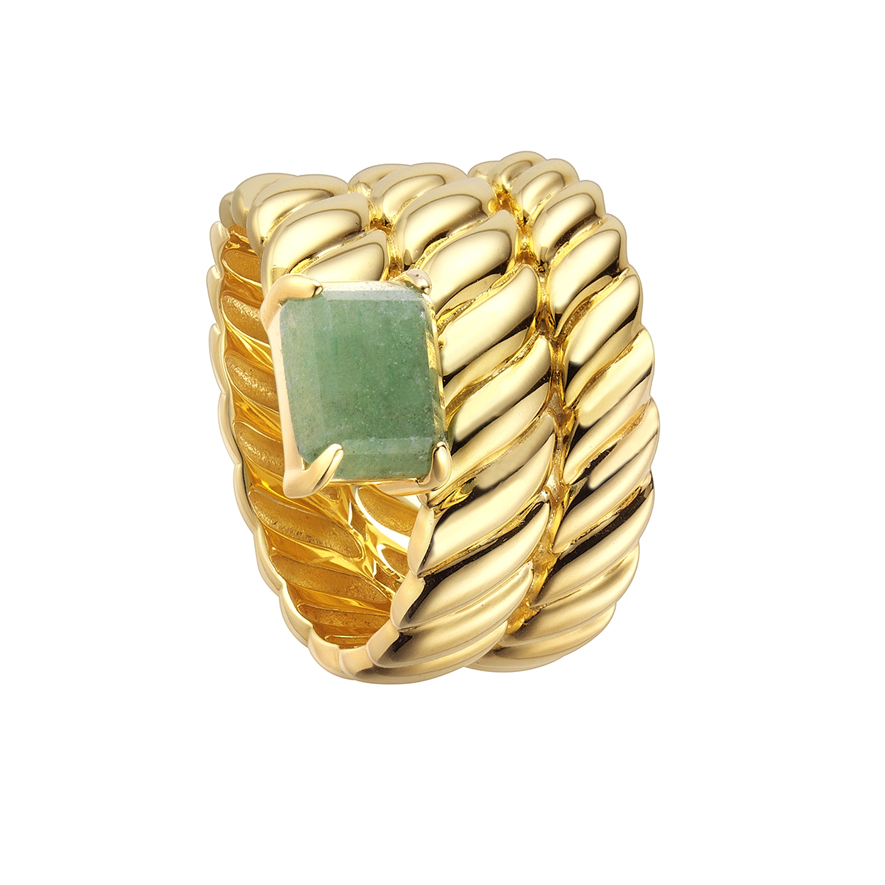 Anillo de Durán Exquse de la colección Minerva de plata dorada con aventurina verde