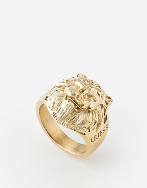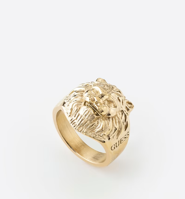 Anillo de acero. Estructura en banda. Detalle de cabeza de león: