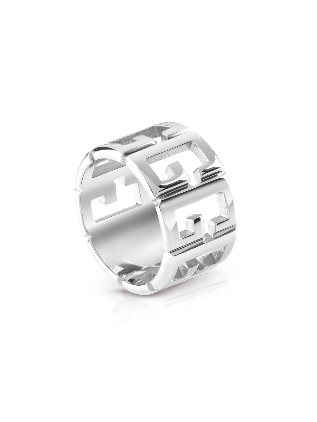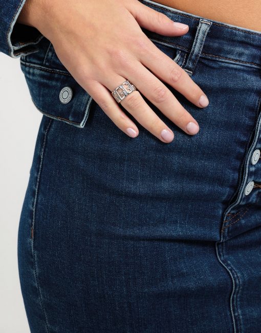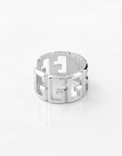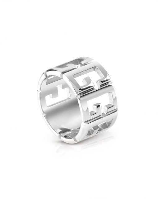 Anillo de acero chapado. Estructura de banda. Logotipo G en toda la superficie.