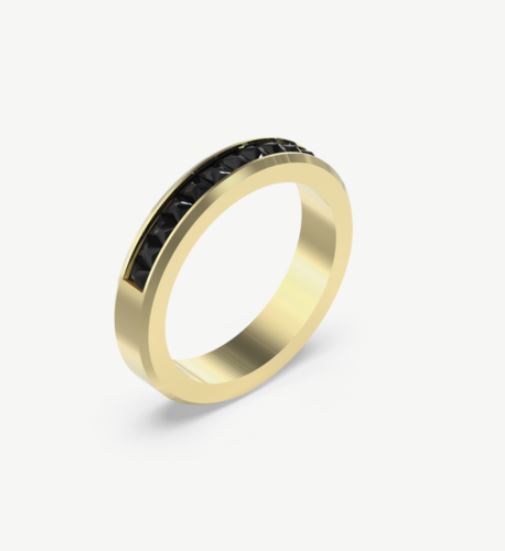 Anillo de acero para hombre de Guess. Anillo dorado con piedras negras decorativas. Talla 64. El color negro es el protagonista de la colección Guess Noir. En pedrería, en lacados o en el color del acero, la elegancia del ""no color"" convierte cada pieza en algo único.