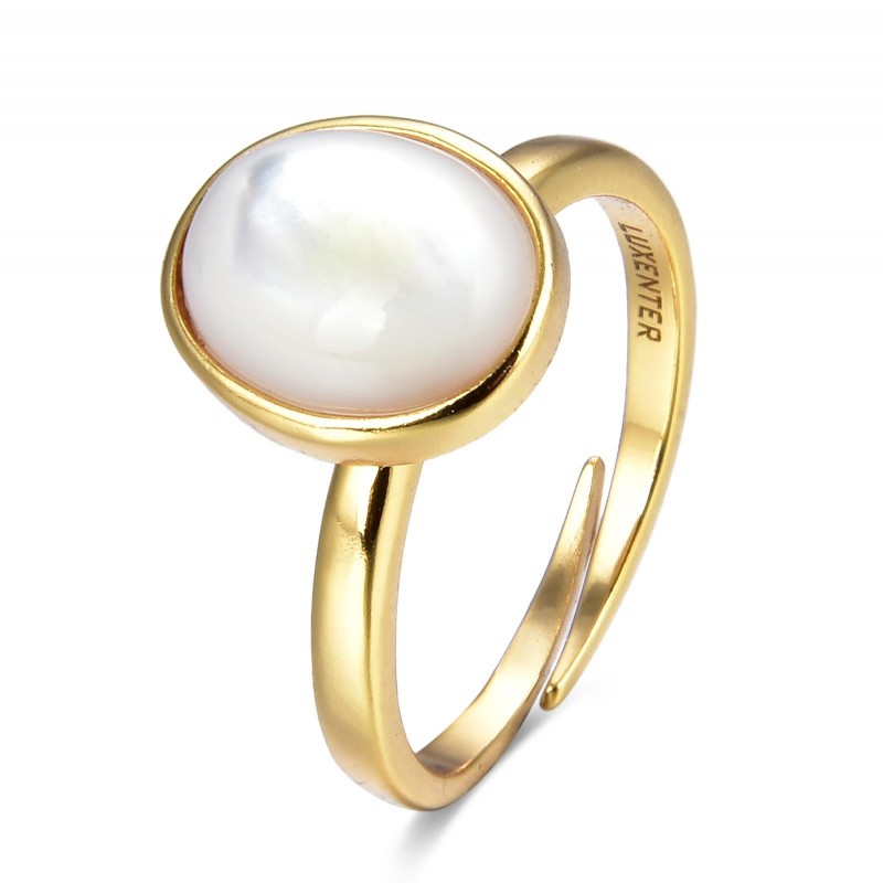 Material Plata de Ley 925 Acabado Baño de oro amarillo de 18kts Piedra Madreperla blanca Medidas 10,5mm alto x 9mm ancho