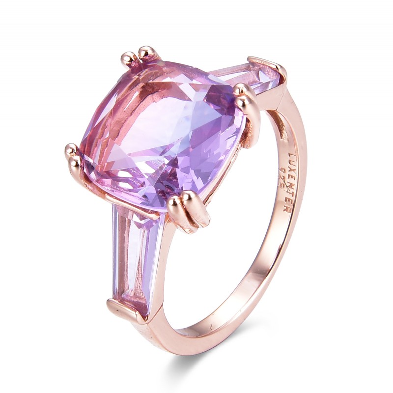 Material Plata de Ley 925 Acabado 18kts rose gold plated Piedra Purple gradient hydrothermal quartz Medidas 11 mm alto x 11 mm ancho
