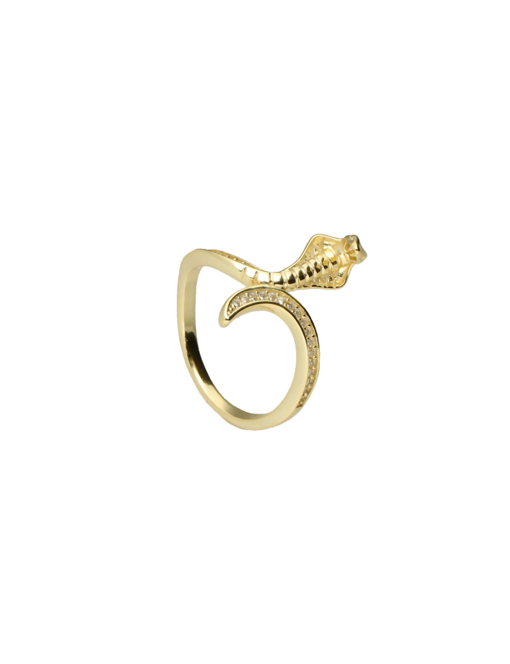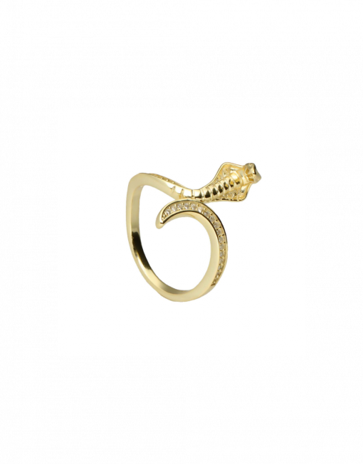Anillo de plata de ley 925 bañado en oro con motivo serpiente y circonitas blancas.