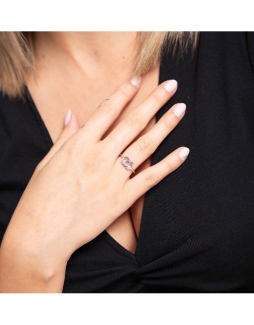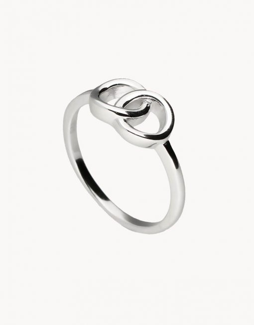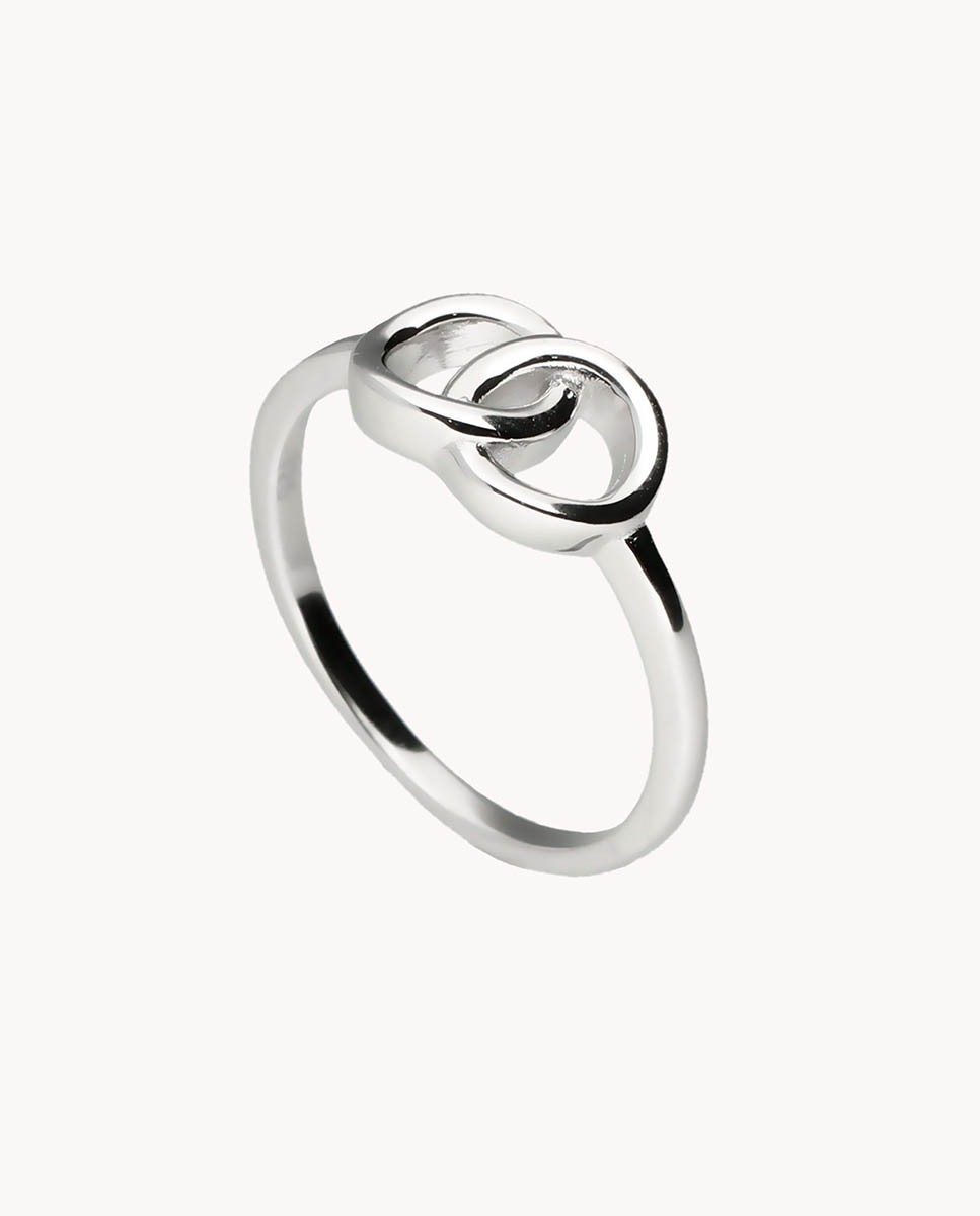 Anillo de plata de ley 925 bañado en rodio con motivo doble karma.