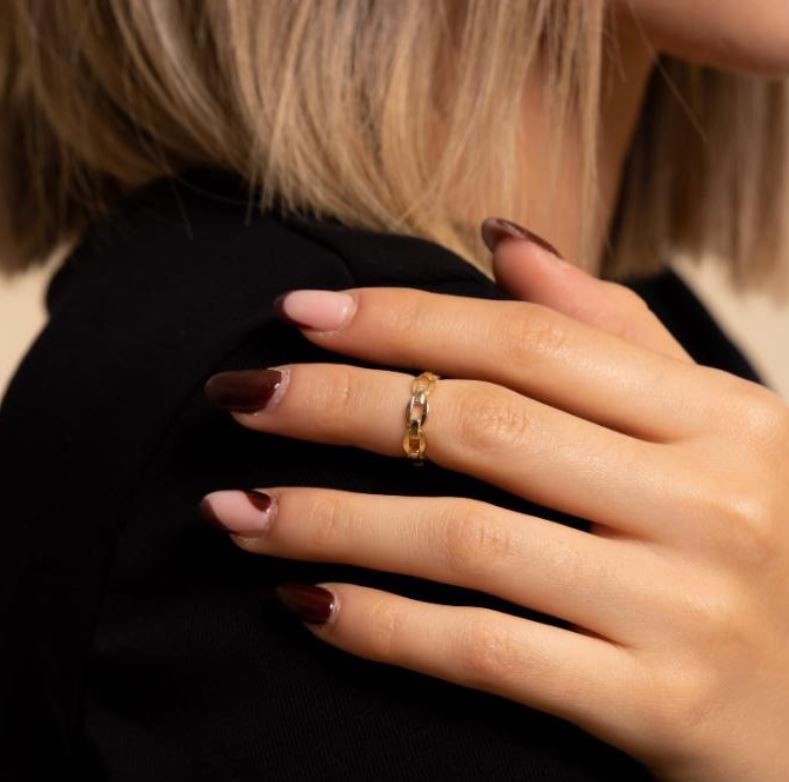 Anillo midi eslabones de plata de ley 925 bañada en oro