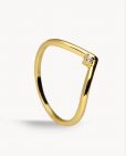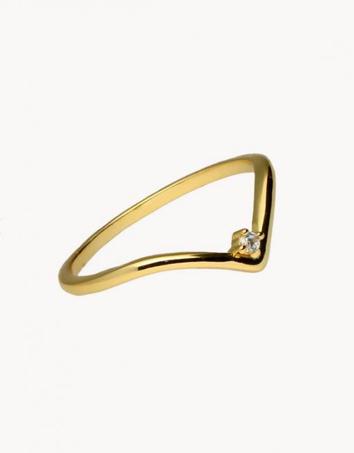 Anillo de plata de ley 925 bañada en oro 18K con detalle central de una circonita blanca.