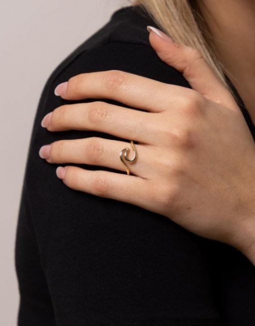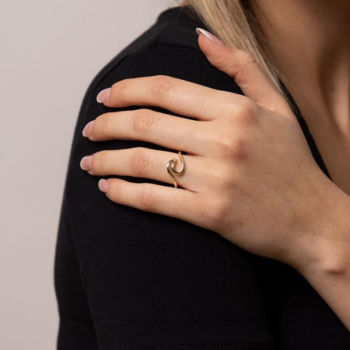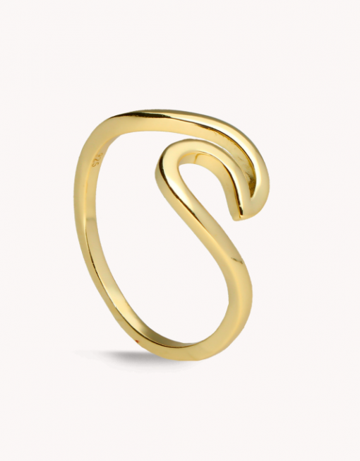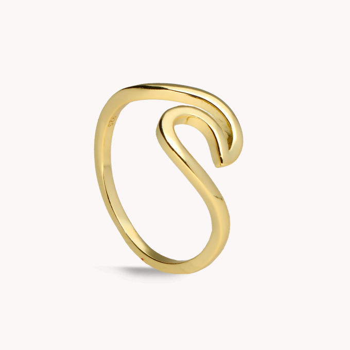 Anillo de plata de ley 925 bañada en oro, con motivo central de ola.