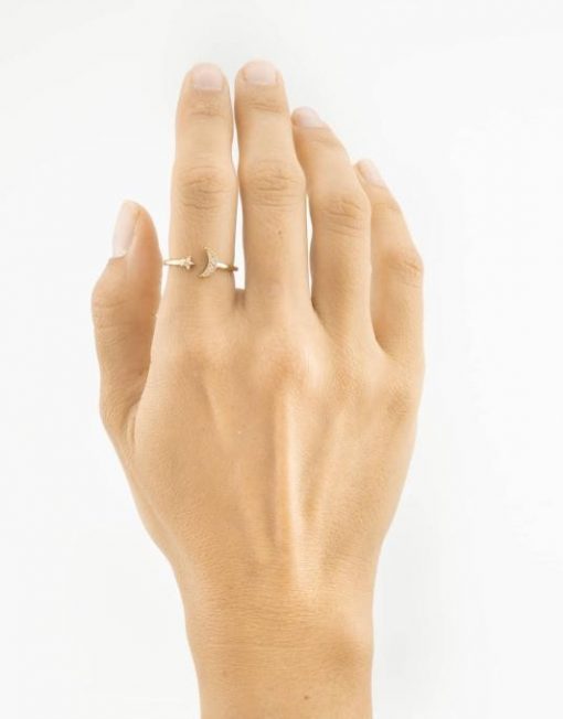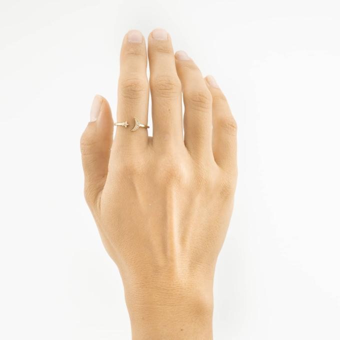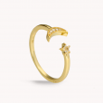 Anillo de plata de ley 925 bañado en oro con motivo de luna y estrella con circonitas blancas.