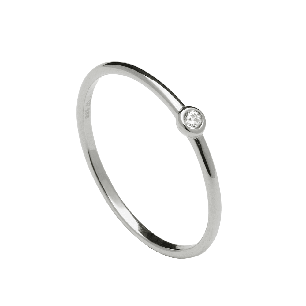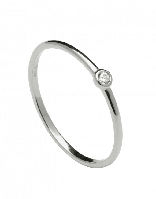 Destaca una circonita central engastada a mano en un anillo de plata de ley 925.