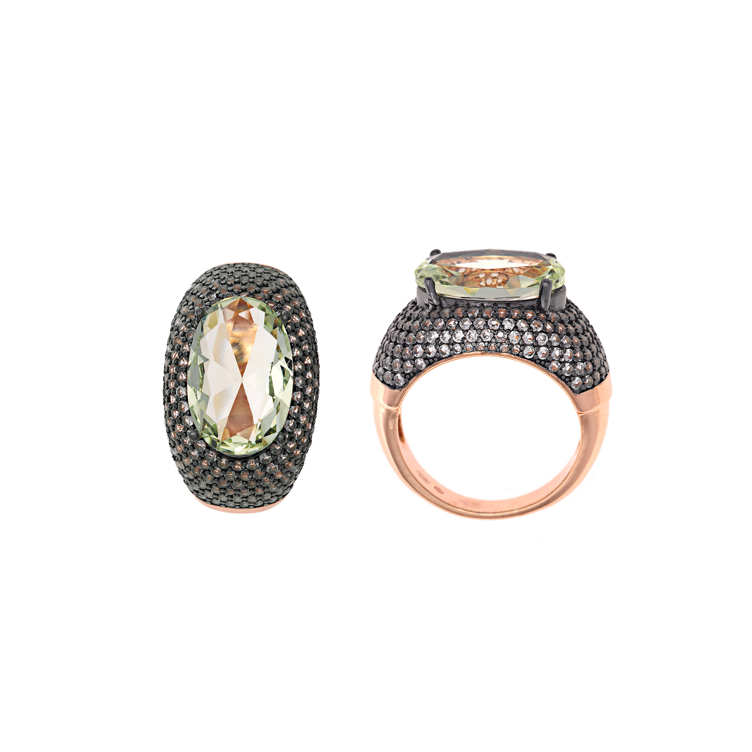 ANILLO SALVATORE 252S0037/16 PLATA CHAPADO ROSA CRISTAL VERDE MANZANA OVALO CIRCONITAS BLANCAS