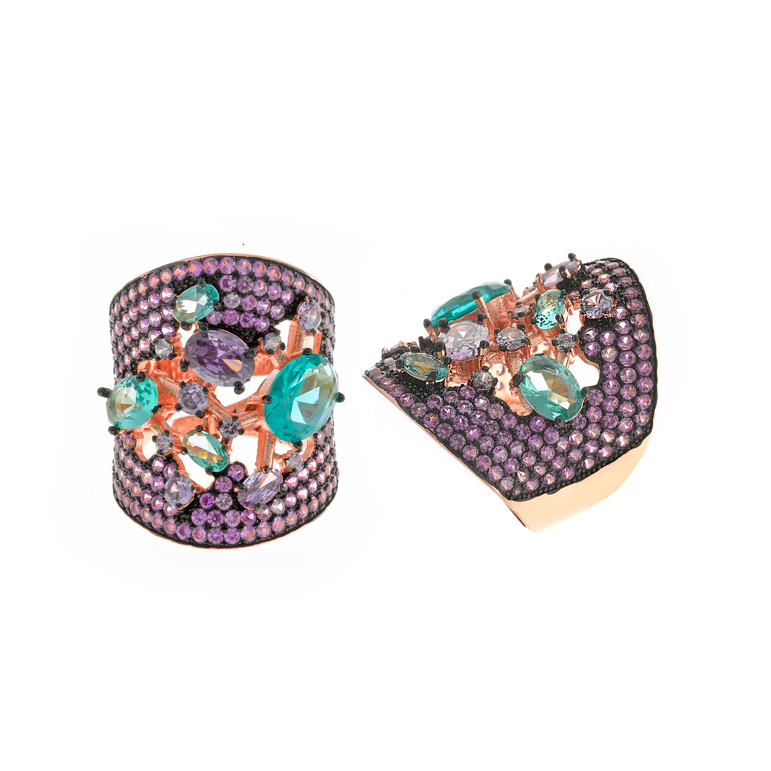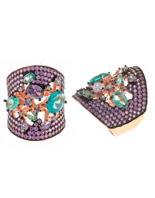 ANILLO SALVATORE 252S0051/16 CHAPADO ROSA CRISTAL VERDE OVALADO