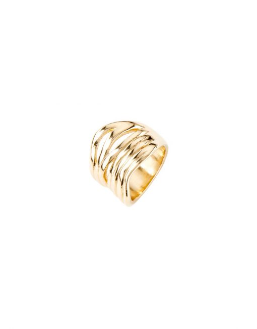 Una joya de estilo irregular que se presenta como una pieza imprescindible para tus conjuntos diarios. Este original anillo, de metal bañado en oro, dispone de hendiduras horizontales de distinto tamaño y disposición, dándole un toque orgánico al diseño, una característica inconfundible de UNOde50. Hazte con este complemento único y 100% artesanal elaborado en España. Disponible en varias tallas.