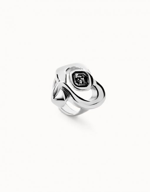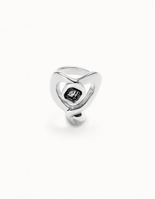 Siente la fuerza de tus emociones con este anillo bañado en plata, con un original diseño de corazón abierto que enmarca un cristal facetado central lleno de luz y simbolismo.