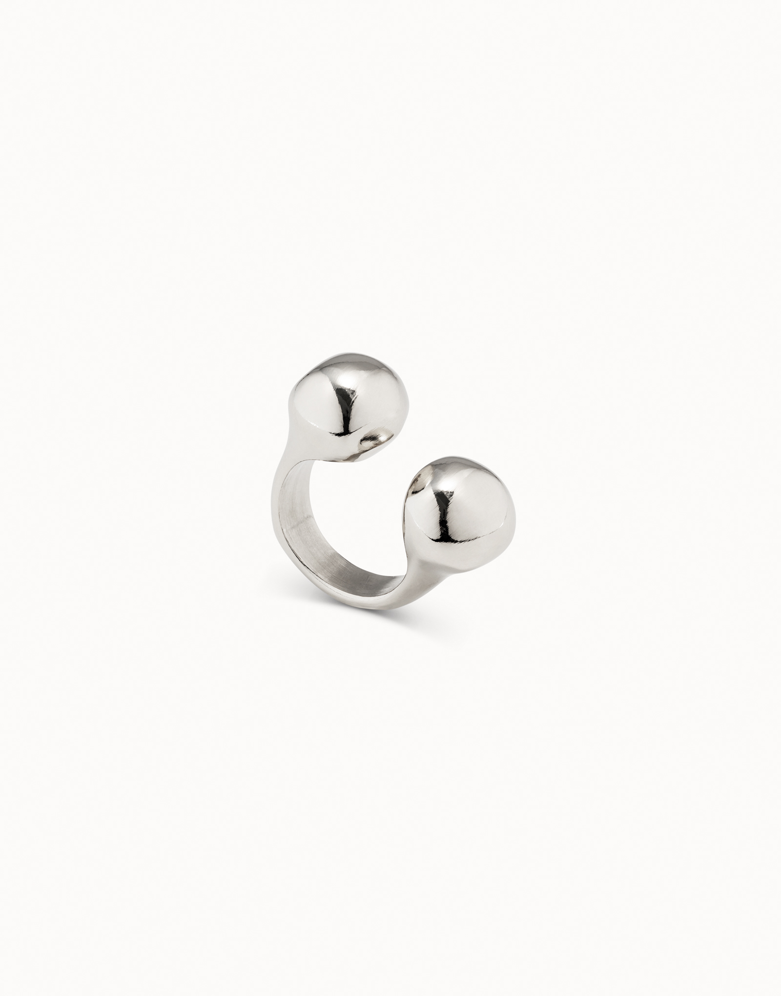 Anillo bañado en plata de ley, abierto en su parte central y rematado por dos bolas. Un diseño único de UNOde50, elaborado en España y 100% artesanal que encontrarás disponible en talla L.