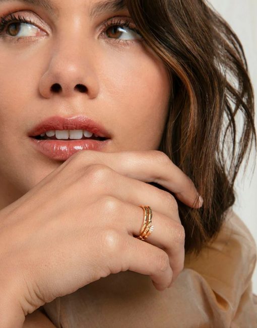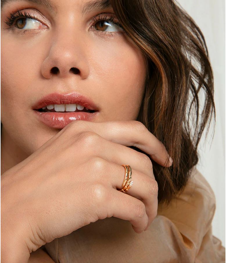 El diseño atrevido y elegante se une en este anillo de plata de primera ley con baño de oro. La serpiente de doble vuelta, adornada con circonitas blancas, aporta un toque simbólico y sofisticado que captura la atención.