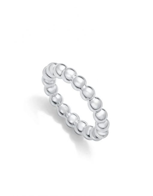 El anillo de acero chapado en plata 999, joya de la colección de Laura Escanes, destaca por su diseño de bolas, que aporta una textura moderna y elegante. Esta pieza única es ideal para quienes buscan un toque de sofisticación en su estilo.
