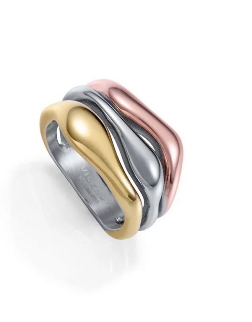 Un anillo que fusiona elegancia y modernidad en un diseño tricolor único. Fabricado en acero con acabados IP rosa e IP dorado, este anillo ofrece una combinación sofisticada de tonos que aportan calidez y distinción. Su diseño versátil lo convierte en una pieza ideal para llevar en cualquier ocasión, añadiendo un toque de color y estilo a tu look. Es una joya pensada para mujeres que buscan una pieza moderna, elegante y llena de personalidad, capaz de realzar cualquier conjunto con su brillo único.