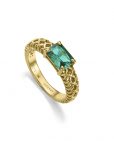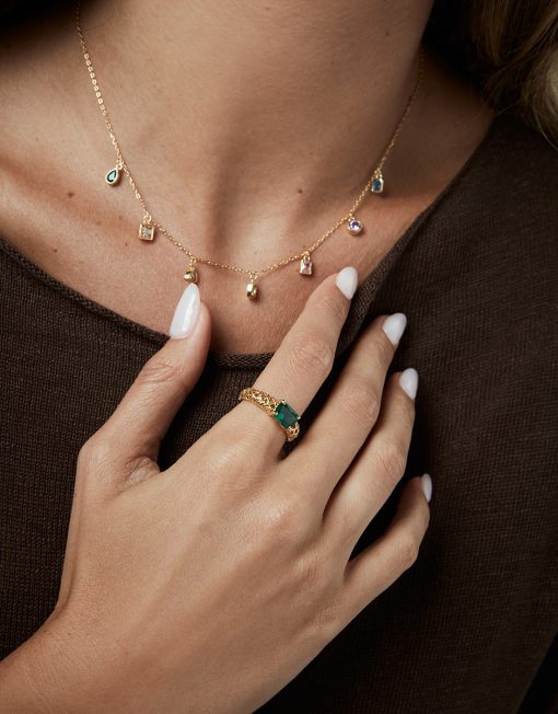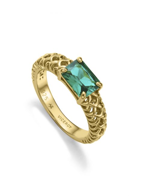 Un anillo que combina delicadeza y originalidad en un diseño lleno de encanto. Elaborado en plata de primera ley con un refinado baño de oro, destaca por su acabado calado que aporta ligereza y sofisticación a la pieza. En el centro, una circonita baguette en tono verde se convierte en la protagonista, aportando frescura, vitalidad y un destello de color que contrasta con la calidez del dorado. Disponible en tallas 14, es una joya que transmite estilo y distinción, pensada para mujeres que buscan piezas únicas que reflejen elegancia y personalidad en cada detalle.