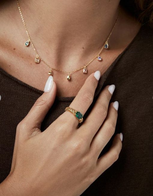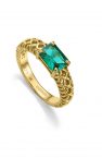 Un anillo que combina delicadeza y originalidad en un diseño lleno de encanto. Elaborado en plata de primera ley con un refinado baño de oro, destaca por su acabado calado que aporta ligereza y sofisticación a la pieza. En el centro, una circonita baguette en tono verde se convierte en la protagonista, aportando frescura, vitalidad y un destello de color que contrasta con la calidez del dorado. Es una joya que transmite estilo y distinción, pensada para mujeres que buscan piezas únicas que reflejen elegancia y personalidad en cada detalle.