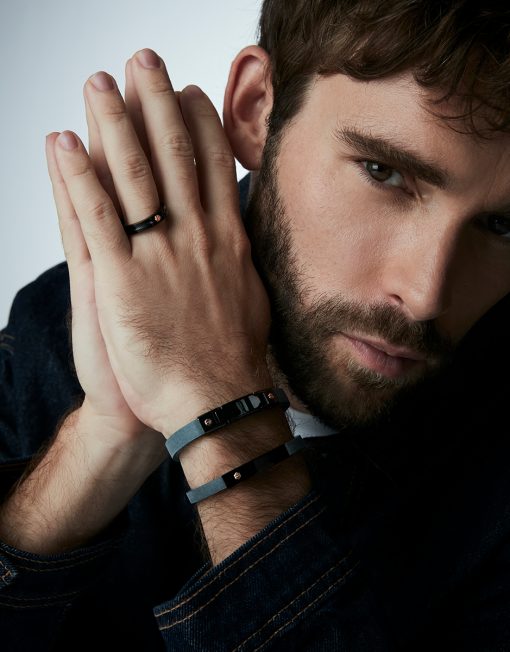 Un anillo de carácter audaz y sofisticación moderna. Fabricado en acero con acabado IP negro, este anillo de hombre destaca por su diseño robusto y el toque de lujo que aporta el tornillo de oro rosa de 9k. El contraste entre el acero negro y el oro rosa le otorga una estética única, perfecta para el hombre que busca una joya que combine fuerza y distinción. Disponible en tallas 20, 22, 24 y 26, es el accesorio ideal para aquellos que desean añadir un toque de elegancia contemporánea a su estilo diario o a ocasiones especiales.