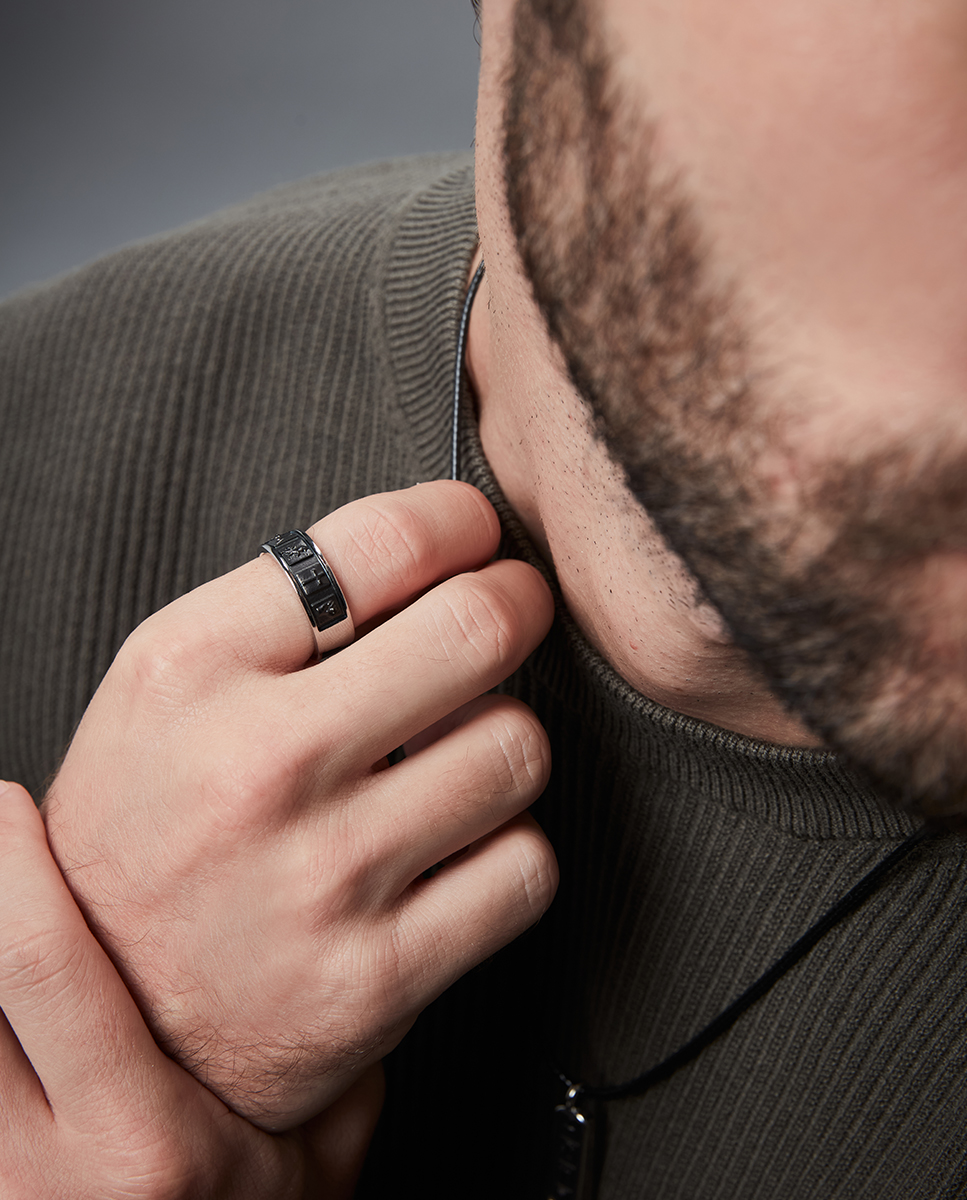 Un anillo que mezcla fuerza y elegancia en un diseño contemporáneo. Fabricado en acero con un acabado IP negro, este anillo para hombre destaca por su estética audaz y moderna. Su acabado mate en negro aporta un toque sofisticado y masculino, ideal para aquellos que buscan un accesorio discreto pero con carácter. Disponible en tallas 20, 22, 24 y 26, es una pieza versátil que se adapta a diferentes estilos, realzando tanto atuendos cotidianos como formales con un toque de distinción y modernidad. Perfecto para el hombre que aprecia el estilo con fuerza y elegancia.