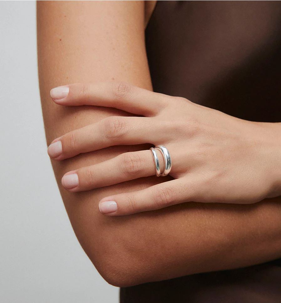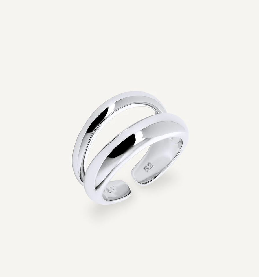 Anillo dúo abierto Allure bañado con una gruesa capa de Plata de ley 925, lo que garantiza una mayor durabilidad.