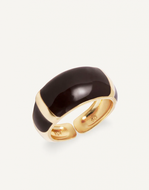 Anillo pinkie Intervalo bañado con una gruesa capa de oro macizo de 18 kt, lo que garantiza una mayor durabilidad. Destaca por la piedra Esmaltes en tono marrón chocolate, color protagonista de la temporada, que aporta textura, brillo y un gesto de estilo propio.