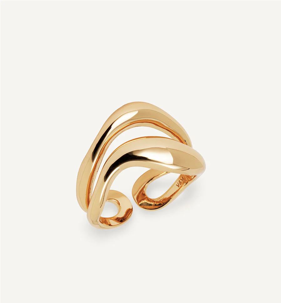 Anillo espiral Waves bañado con una gruesa capa de oro macizo de 18 kt, lo que garantiza una mayor durabilidad. Pertenece a la Colección Waves, inspirada en la suavidad del agua, cada pieza evoca una gota en movimiento que se convierte en una curva que acompaña al cuerpo. Con acabados pulidos espejo y un diseño minimalista.