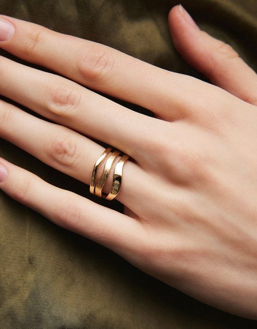Anillo Mar, bañado en oro de 18 kt. De la colección Texturas, joyas que complementan con sofisticación cualquier estilo de vestido.