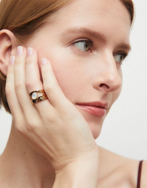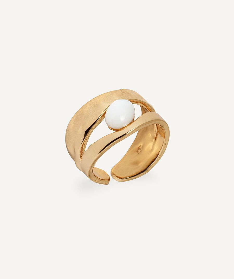 Anillo Reflexe bañado en oro de 18 kt, elaborado bajo los más altos estándares de calidad para garantizar una mayor durabilidad. Destaca por la piedra preciosa Madreperla, formada por capas de nácar dentro de conchas marinas. De la Colección Sun Drop de María G. de Jaime que presenta una línea de joyas inspiradas en los instantes dorados del atardecer en Menorca. Una celebración de la belleza efímera, de detenerse a contemplar el paisaje y sentir el lujo de los momentos sencillos. Joya especial para viajar contigo en tus momentos inolvidables del verano.