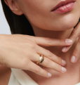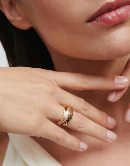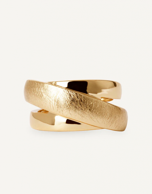 Anillo tiras textura Arc bañado con una gruesa capa de oro macizo de 18 kt, lo que garantiza una mayor durabilidad. De la colección Texturas, una línea fashion que presenta joyas de formas limpias y elegantes, fáciles de combinar en cualquier ocasión.