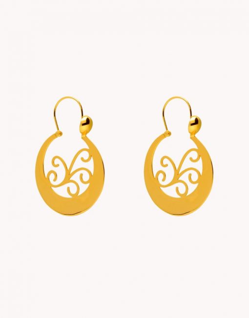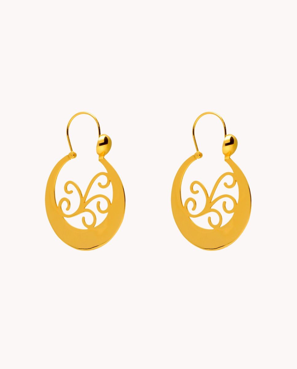 Pendientes de aro canario de plata de ley 925 bañada en oro 18K de 35 mm de ancho y 50 mm de alto, cierre catalán.