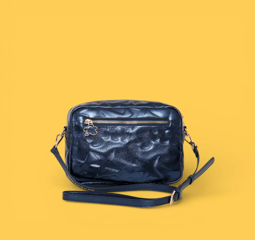 Bandolera con grabado de iconos en tonalidad azul. Diseño versátil que combina funcionalidad y estilo, perfecta para llevar contigo en el día a día. Su correa ajustable permite diferentes formas de uso, adaptándose a tus necesidades. Acabado de calidad que refleja la esencia de Agatha Ruiz de la Prada, con detalles icónicos grabados que le dan un toque distintivo y personal.