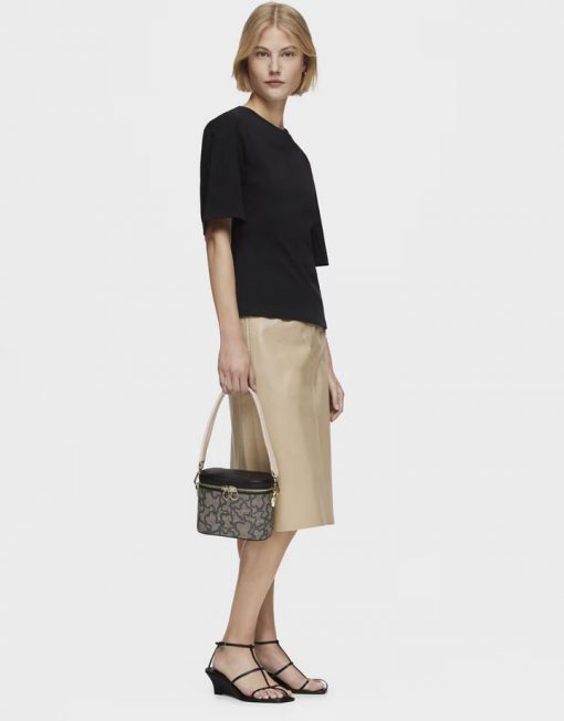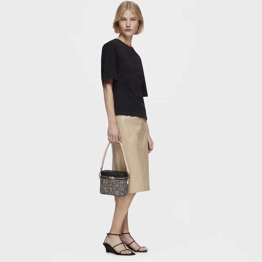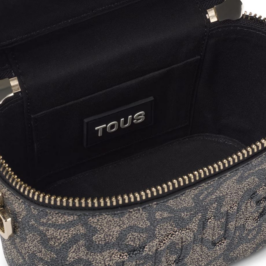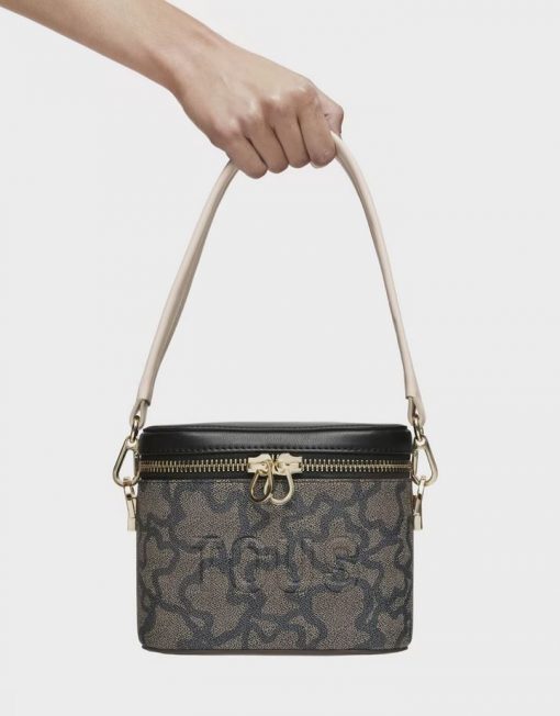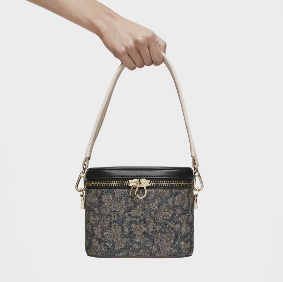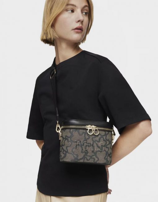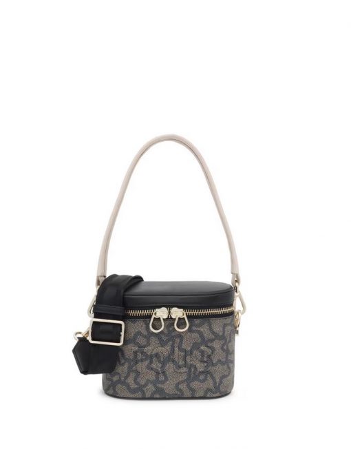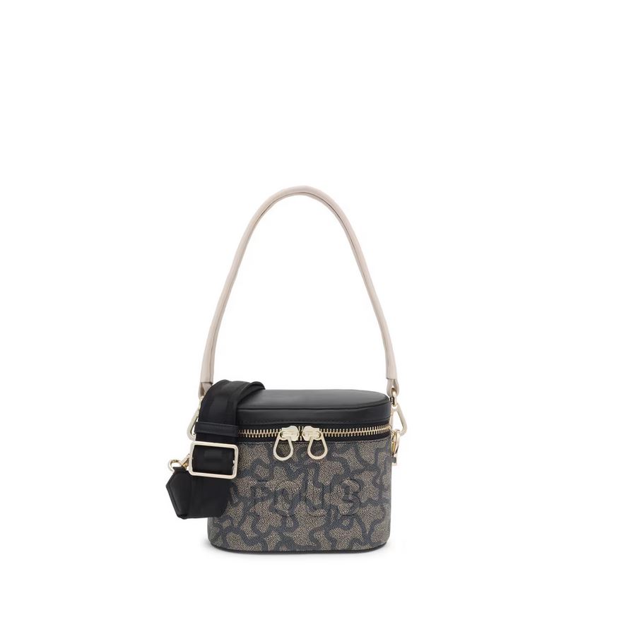 Bolso bandolera y de mano de lona con estampado en color negro y detalles de piel sintética Kaos Icon. Cierre de cremallera. Bolsillo interior abierto. Asa bandolera ajustable y desmontable y asa corta de mano desmontable. Medidas (alto x ancho x fondo): 15 x 19 x 11 cm.