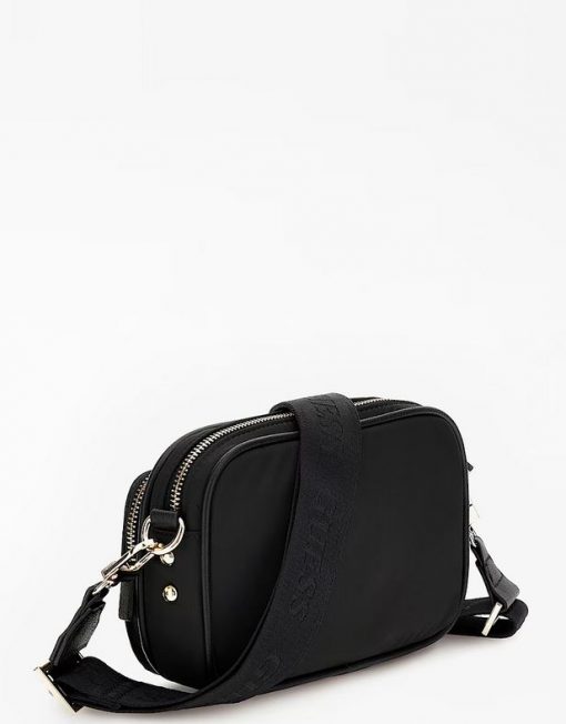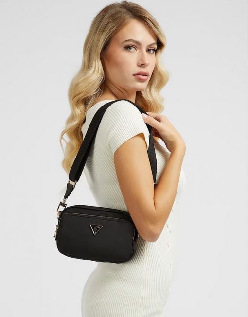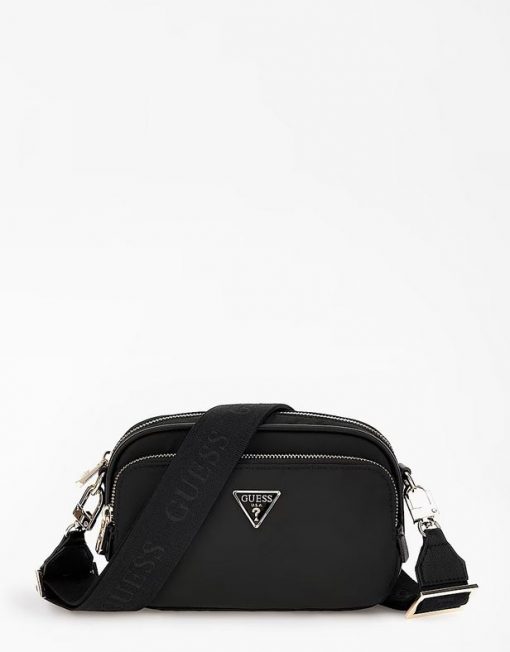 Bolsillo frontal con cremallera. Triángulo logo frontal de metal.