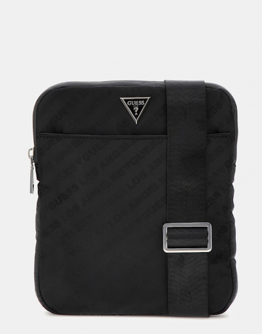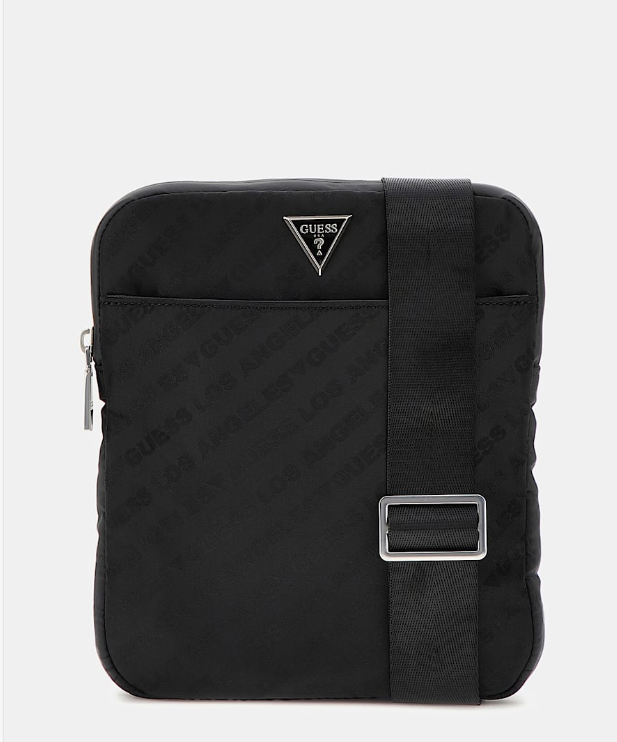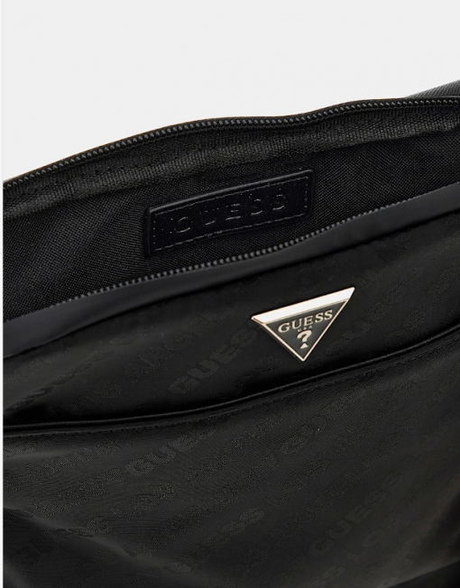 Logotipo Guess jacquard integral a tono con logotipo triángulo metálico esmaltado.