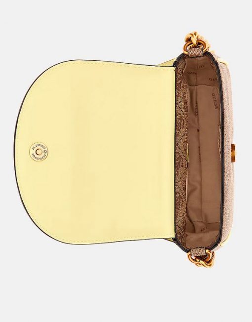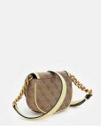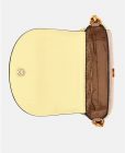 Exterior de piel sintética. Cierre con solapa. Piezas metálicas de color dorado.