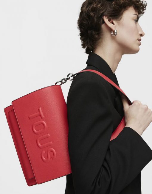 Bolso bandolera mediano Audree TOUS Brenda de poliuretano en color rojo. Incorpora una solapa y cierre con dos botones magnéticos. Cuenta con dos compartimentos separados por uno con cremallera y un bolsillo abierto en la parte delantera. Asa de hombro fija y asa bandolera ajustable y extraíble. Medidas (alto x ancho x fondo): 19 x 25 x 11,5 cm.