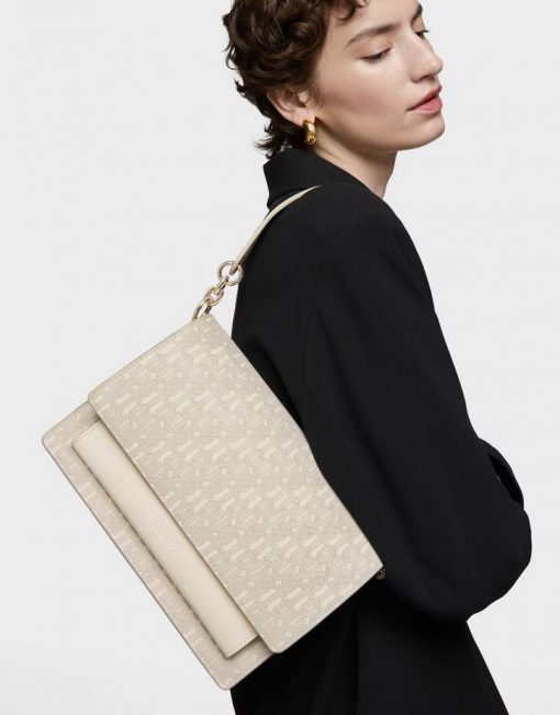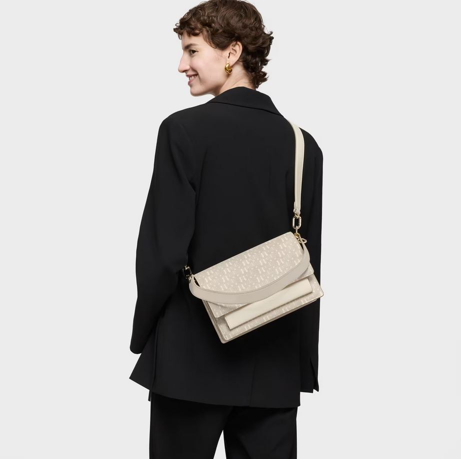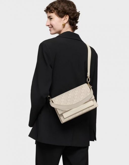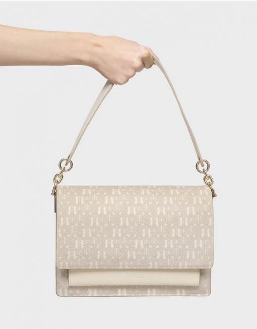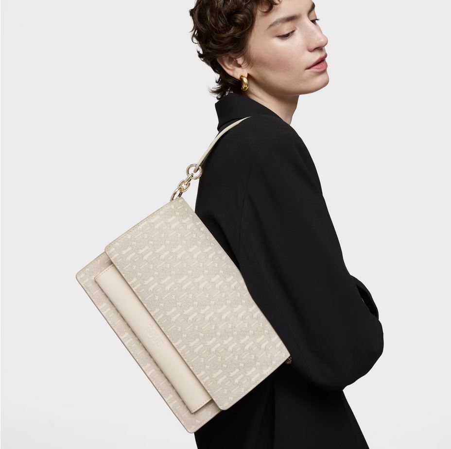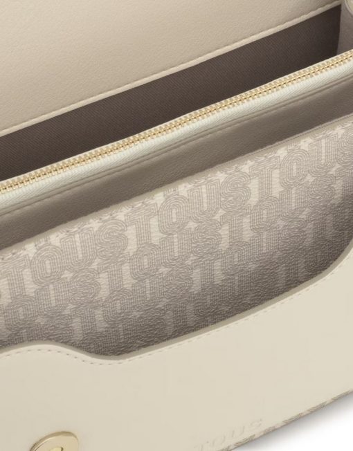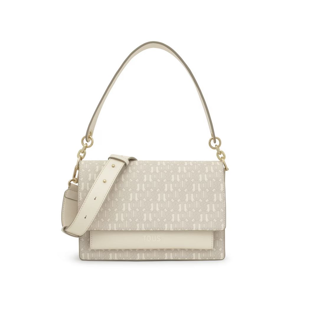 Bolso bandolera mediano Audree TOUS Buckles Silhouette de lona con detalles de poliuretano en color beige. Incorpora una solapa y cierre con dos botones magnéticos. Cuenta con dos compartimentos separados por uno con cremallera y un bolsillo abierto en la parte delantera. Asa de hombro fija y asa bandolera ajustable y desmontable. Medidas (alto x ancho x fondo): 17 x 25 x 11,5 cm.