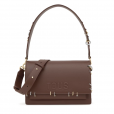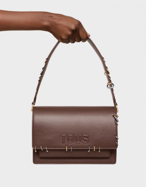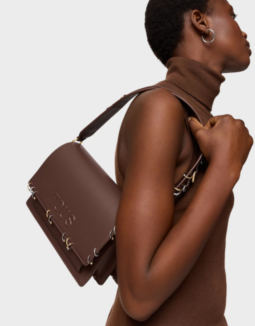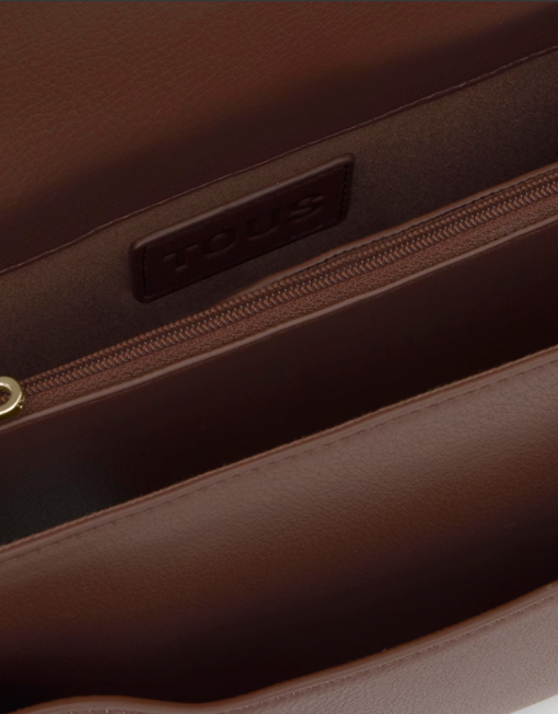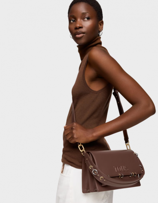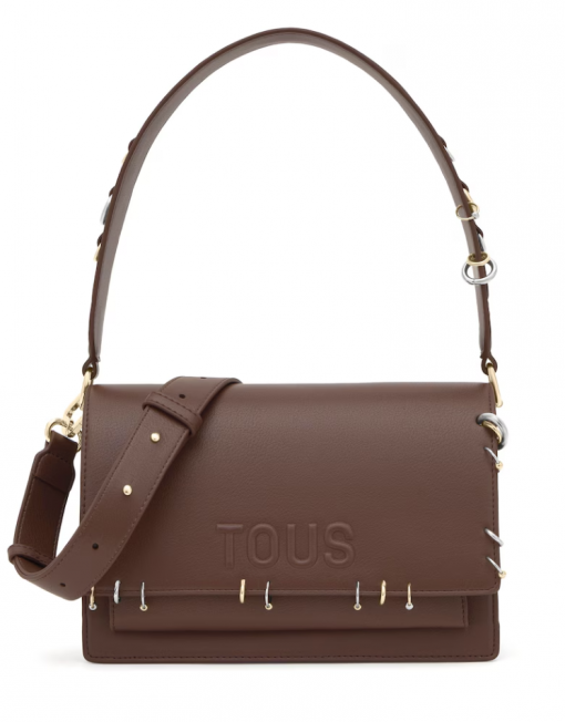 Bolso bandolera mediano Audree Earrings de poliuretano en color marrón. Cierre de solapa con botones magnéticos. Bolsillo exterior abierto. Tiene dos compartimentos separados por uno con cremallera. Asa bandolera ajustable y desmontable y asa de hombro desmontable. Medidas (alto x ancho x fondo): 17 x 25 x 12 cm.