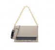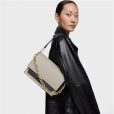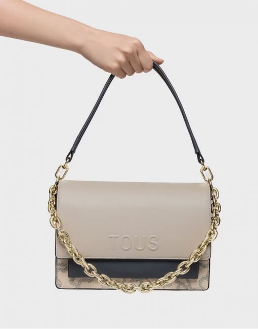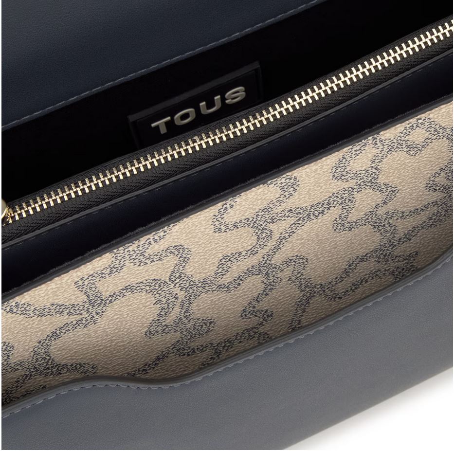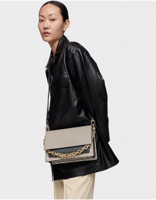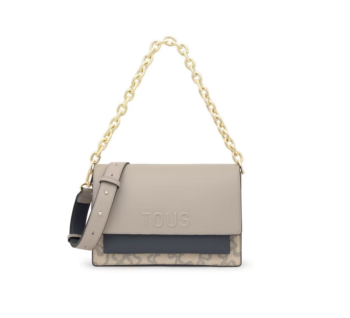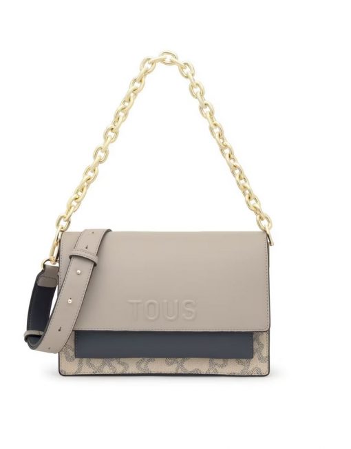 Bolso bandolera mediano Audree Kaos Icon de poliuretano y lona con estampado Kaos en color topo. Bolso con dos compartimentos separados por un bolsillo con cierre de cremallera y un bolsillo abierto en la parte delantera. Cierre de solapa con dos botones magnéticos. Asa de hombro fija y asa bandolera ajustable y extraíble. Medidas (alto x ancho x fondo): 16,5 x 25 x 11 cm.