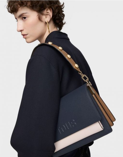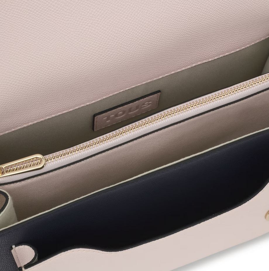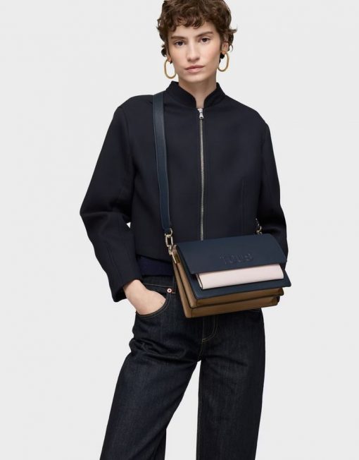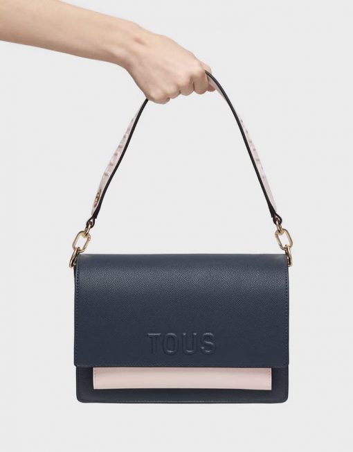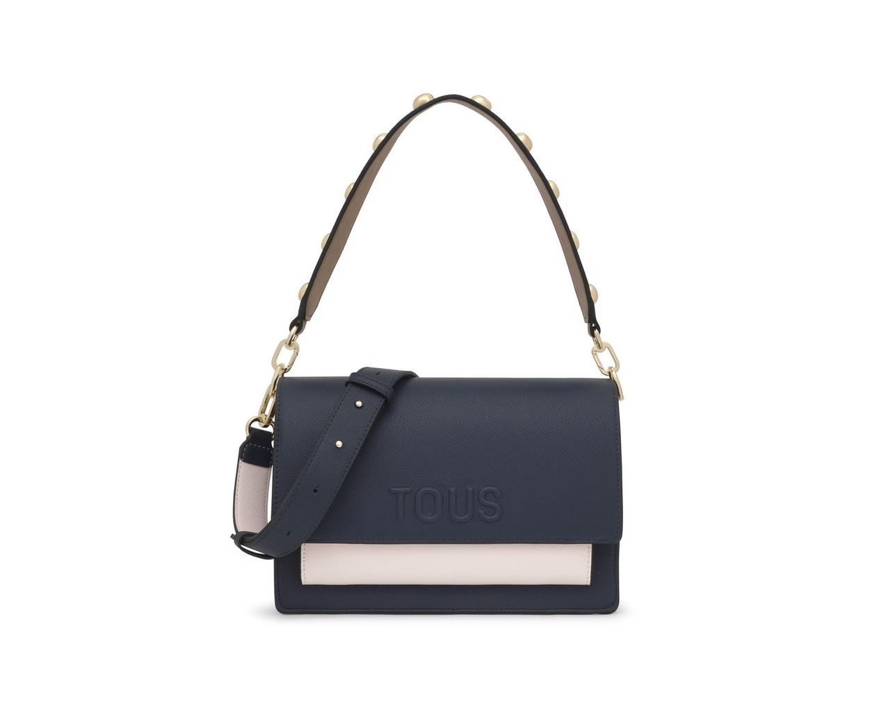 Bolso bandolera mediano Audree Saffiano de poliuretano en color azul y rosa. Cierre de solapa con cierre de botón magnético. Dos compartimentos separados por otro compartimento con cierre de cremallera y bolsillo abierto en la parte delantera. Asa de hombro desmontable y asa bandolera ajustable y desmontable. Medidas (alto x ancho x fondo): 16 x 25 x 11 cm.